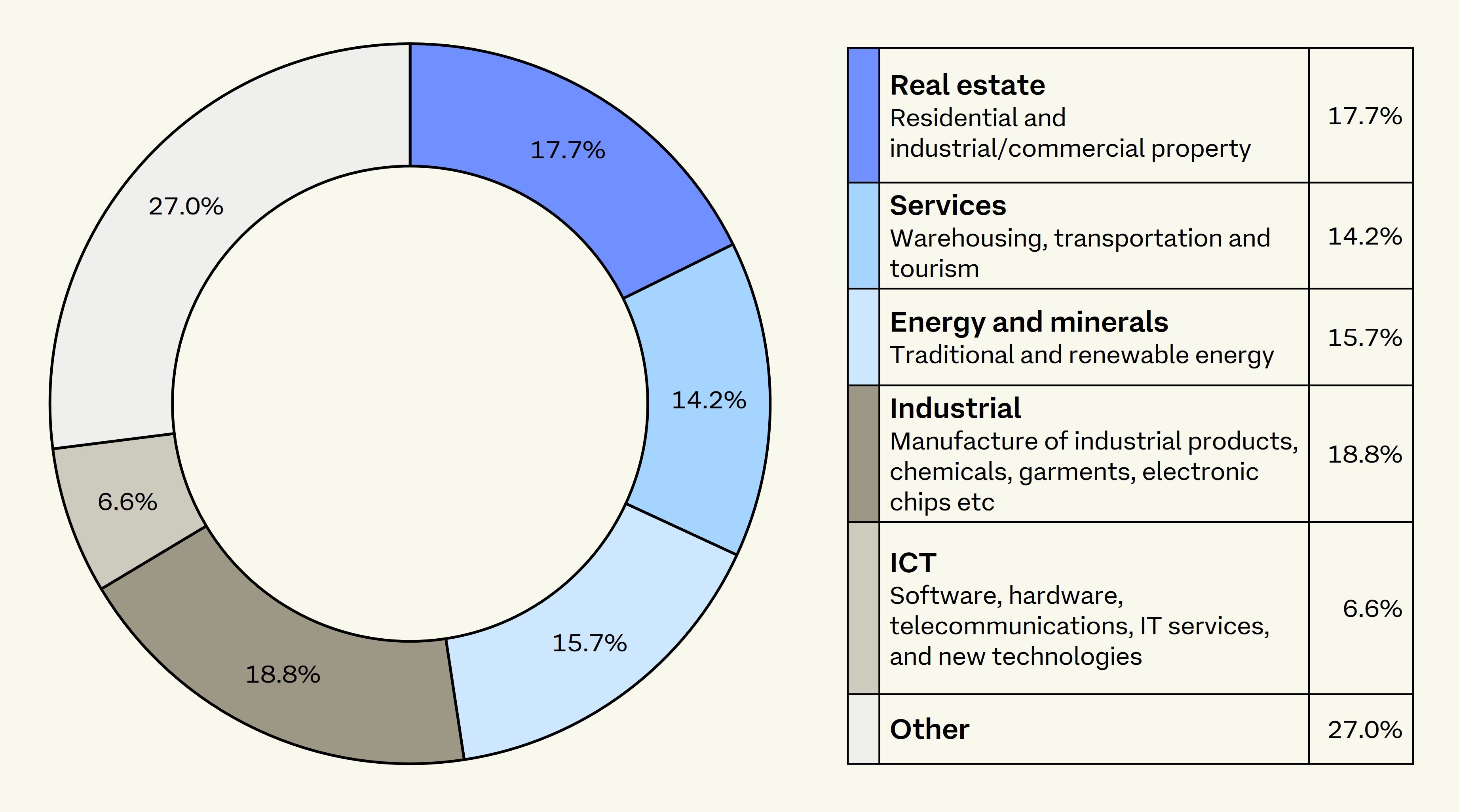 The majority of notified transactions in 2024 (c. 73%) concerned five sectors:
